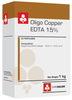Eurosolids Oligo Copper-EDTA 15% is a 100% chelated single micronutrient fertilizer of high purity. Thanks to the unique cluster-shaped microgranule, it is completely dust-free, flows easily and dissolves quickly. With its porous structure, the microgranule bursts from the inside out, leading to faster dissolution even in cold or hard water. Our product is not sensitive to caking in normal storage conditions. It is recommended to cure Copper deficiency in all crops.