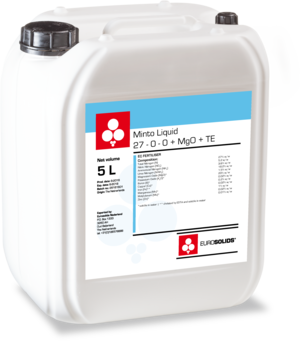 Eurosolids Minto Liquid | 27 - 0 - 0 + MgO + TE is a pure and concentrated liquid with a high Nitrogen content combined with EDTA chelated metal micronutrients. Our product is a transparent, stable solution and is recommended during periods of strong vegetative growth and protein accumulation in grain or fruit. The presence of Magnesium and micronutrients contributes to the production of chlorophyll and supports general plant metabolism. A healthy green plant is crucial for adequate photosynthesis and high yields. Produced in our own Euroliquids factory.