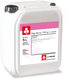 Eurosolids Oligo Boron 150 g/L Liquid is a pure and highly concentrated liquid fertilizer. Formulated from Boron Ethanolamine and molybdenum, the product is a stable transparent to yellow solution. Boron is a major micronutrient needed by a wide range of crops to achieve optimal performance. It plays a crucial role in flowering, fruit setting and increase sugar and oil content in the harvest. Thanks to the ethanolamine complexation, the product is soft on leaves and effective in foliar application.