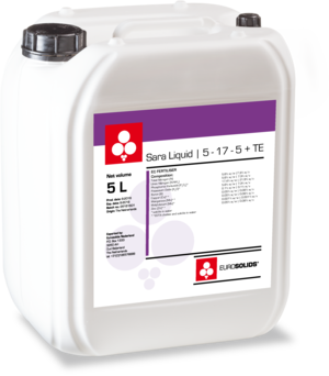 Eurosolids Sara Liquid | 5 - 17 - 5 + TE is a pure and concentrated liquid NPK with a high Phosphate content combined with EDTA-chelated metal micronutrients. Our product is a transparent and stable solution recommended as a supplement during critical early stages to help induce good plant establishment and quality rooting and flowering. Being successful in early plant development is crucial to securing good yields and optimal plant performance. Produced in our own Euroliquids factory.